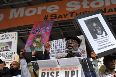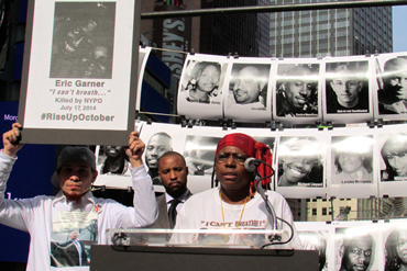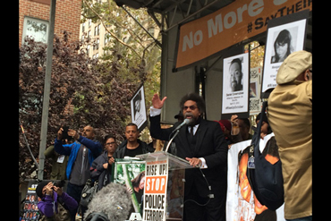 A manifestação do dia seguinte através de Manhattan começou com uma concentração na baixa da cidade. Carl Dix, representante do Partido Comunista Revolucionário e co-iniciador do “De Pé em Outubro” (juntamente com Cornel West), liderou a multidão gritando: “Sou um revolucionário!” West disse à multidão: “Façamos tudo o que pudermos para pôr fim ao horror da polícia a assassinar o nosso povo. E depois façamos ainda mais porque temos de pôr fim a isto.”