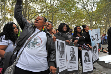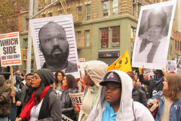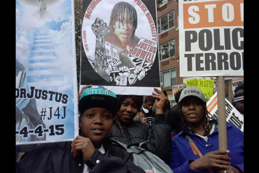 Um grande número de familiares e representantes de vítimas de assassinatos policiais encabeçou milhares de outras pessoas à medida que marchavam pelo bairro residencial. Ao longo do percurso, partilharam a dor e a indignação deles e desafiaram todas as pessoas a lutar. As pessoas desafiaram os ataques da polícia, que prendeu cinco pessoas perto do final da manifestação. Um contingente de várias centenas de jovens e outras pessoas levou a mensagem à Times Square. Seis deles foram presos.