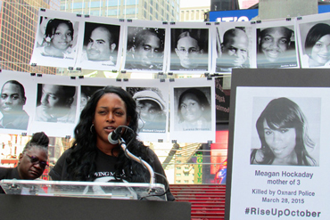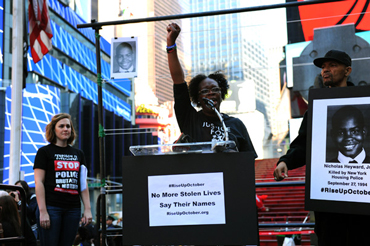 As ações começaram a 22 de outubro na Times Square, o centro simbólico de Nova Iorque. Mais de 30 familiares e representantes de pessoas cujas vidas foram roubadas pela polícia participaram numa concentração onde artistas, intelectuais proeminentes e outras vozes de consciência leram os nomes de milhares de pessoas assassinadas pela polícia durante a última década. Os familiares contaram as histórias das vítimas e entregaram a sua presença moral e física ao projeto No More Stolen Lives/Say Their Name [Não Mais Vidas Roubadas/Digam os Nomes Deles].