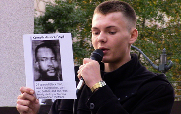 Nessa tarde, várias centenas de pessoas concentraram-se e marcharam pelo município nova-iorquino de Brooklyn para marcar o Dia Nacional de Protesto pelo Fim da Brutalidade Policial, da Repressão e da Criminalização de Uma Geração, uma campanha em progresso iniciada há 20 anos. Entre elas estavam familiares de pessoas mortas pela polícia em Nova Iorque e noutras cidades e estudantes do ensino secundário. Um estudante disse: “Isto é algo em que eu não tinha pensado muito, mas que devia, é um enorme problema”. Um outro disse: “O que está a acontecer aos negros é genocídio”. Também havia estudantes universitários e muitas outras pessoas, entre as quais um grupo de pessoas que vieram juntas de uma agência de serviço social que trabalha com pessoas com SIDA e com os sem-abrigo. Cerca de meia dúzia de pessoas transgénero vieram em grupo. Havia uma faixa que expressava solidariedade com a luta do povo palestino.