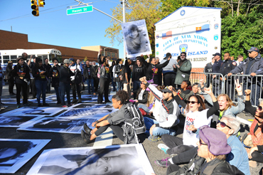 A 23 de outubro, cerca de cem manifestantes juntaram-se a 17 pessoas que tinham bloqueado a entrada da infame prisão da Ilha de Rikers, “uma câmara de tortura e uma prisão de devedores” onde milhares de pessoas são detidas durante meses e anos – uma média de 14 mil pessoas a cada noite – frequentemente porque não conseguem pagar uma fiança em dinheiro para serem libertadas enquanto estão à espera de julgamento por delitos menores. Eles gritaram “Rikers, Rikers, fechem isto” e o nome de Kalief Browder, um jovem de 16 anos que foi mantido em prisão solitária durante mais de dois anos por supostamente ter roubado uma mochila. Torturado pelos guardas, ele cometeu suicídio depois de ter saído da prisão. À frente das pessoas que faziam o protesto estavam fotos ampliadas de pessoas assassinados pela polícia, entre as quais 11 que morreram na Ilha de Rikers.