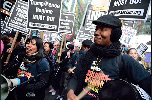 Durante as próximas duas semanas continuará a haver protestos em Nova Iorque — e a 11 e 18 de novembro, dias das manifestações nacionais convocadas pela Recusar o Fascismo. O que começou a 4 de novembro precisa de chegar a um novo nível e abrir caminho para que os milhares de manifestantes cresçam para centenas de milhares e milhões, agindo com uma reivindicação unificadora: O regime de Trump e Pence tem de se IR EMBORA!