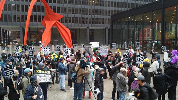 Pelo menos 300 pessoas, e possivelmente mais, participaram na manifestação. Um homem negro de 50 ou mais anos disse: “Sentíamo-nos como se fôssemos milhares.” Foi uma manifestação incrivelmente animada com um grupo de tambores dos Artistas Degenerados Contra o Fascismo a marcar o ritmo — o jornal Chicago Tribune descreveu-os como a “secção de percussão” do protesto. Apesar das centenas de polícias em bicicleta ao lado da manifestação, muitas pessoas foram juntando-se à manifestação à medida que ela se dirigia para a Torre Trump.