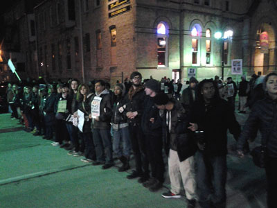 Ao longo do dia de sábado, a polícia fez continuamente ameaças e bloqueou a manifestação. Muitas das pessoas que saíram à rua ficaram encorajadas pela sublevação nacional de protestos em torno de Michael Brown e Eric Garner e estavam irredutíveis em que os assassinatos policiais de jovens não podem continuar a acontecer. No meio de tudo isto, muitas pessoas exprimiram a sua fúria e frustrações à polícia, e as discussões sobre como acabar com estes assassinatos policiais continuaram entre a multidão.